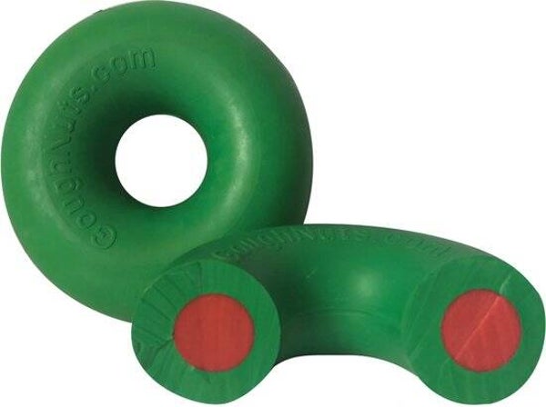 Dit speelgoed van Goughnuts heeft de gepatenteerde, veiligheidsindicator. De binnen kern is rood, wanneer deze zichtbaar word, stuurt u het speelgoed terug ter vervanging.