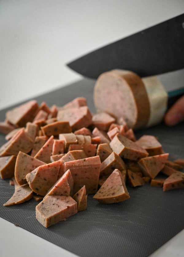 De worsten zijn snijvast. Ideaal dus om gemakkelijk in stukjes te snijden.